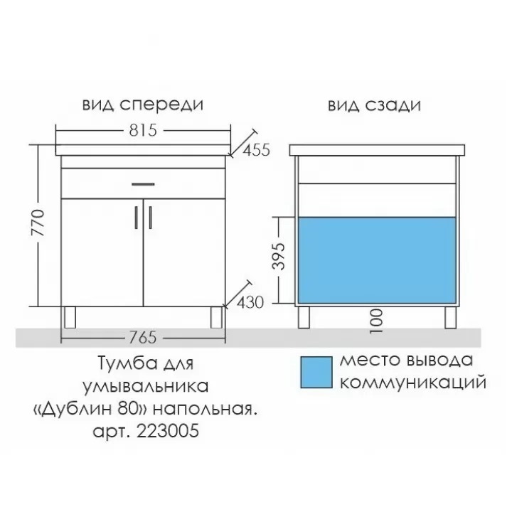 Тумба напольная "Дублин 80"для умывальника "Фостер 80".Тумба имеет оптимальную организацию внутреннего пространства. Комплектуется современной прямоугольной раковиной из санфаянса.