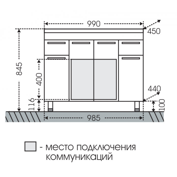 тумба под раковину, габариты: 99x 85x 44см, корпус белый