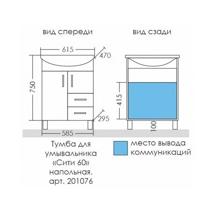 Тумба для умывальника напольная "Сити 60" 2 ящика.