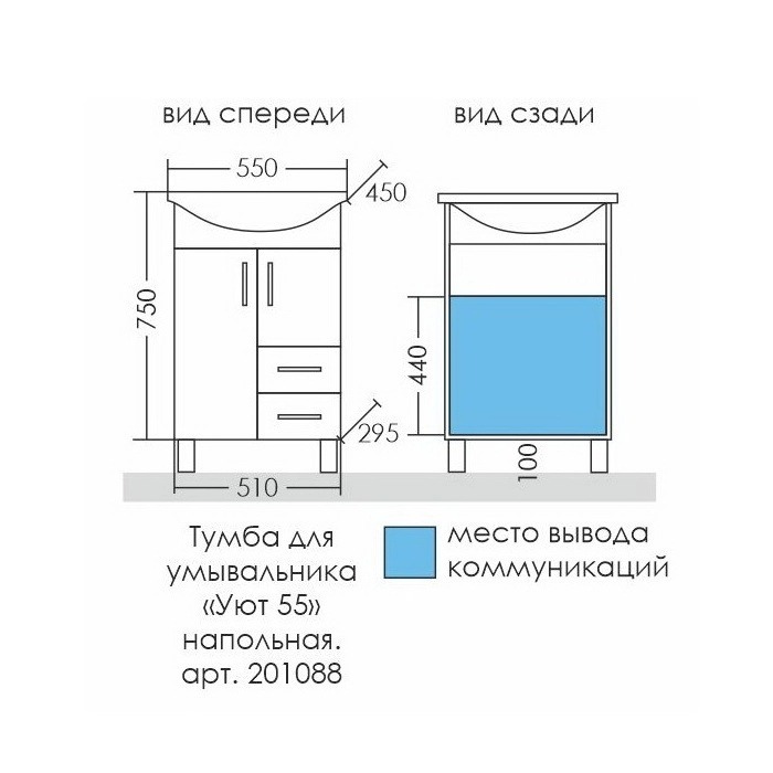 Тумба для умывальника напольная "Уют 55" 2 ящика.
