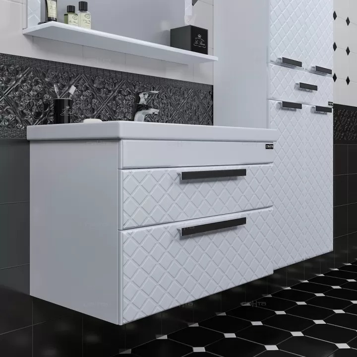 Корпус изделия выполнен из влагостойкого ЛДСП, фасад из МДФ. Фасадные и боковые стенки мебели окрашены высокоглянцевой эмалью.