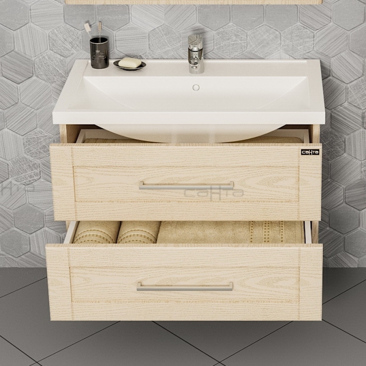 • Подвесная тумба под раковину Санта Венера 80 с двумя выдвижными ящиками