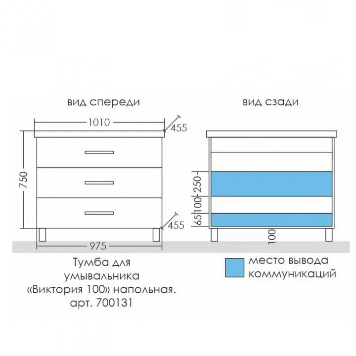 Тумба напольная "Виктория 100" для умывальника "Фостер 100".