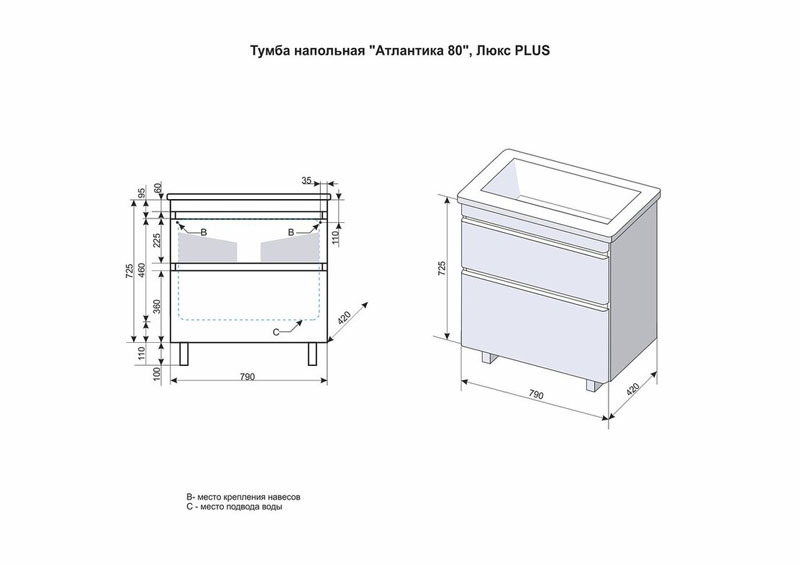 Тумба идет в комплекте с раковиной. Умывальник Атлантика 80