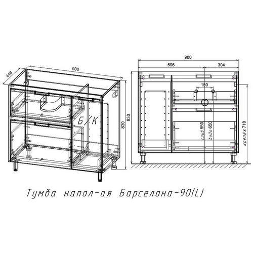 Система хранения: 2 выдвижных ящика, выкатная корзина для белья.