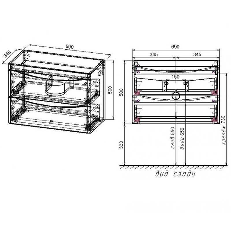 Тумба идет в комплекте с раковиной. Умывальник Каре Люкс МИНИ 700х350