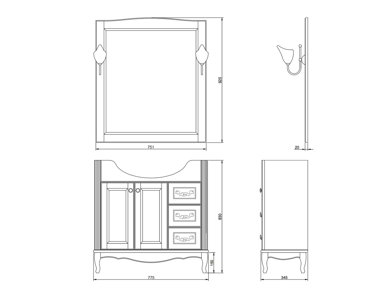 Комплектация: тумба без раковины, с ручками латунь хром и доводчиками.
