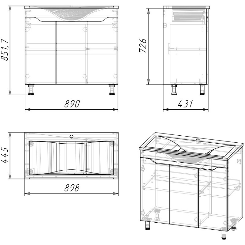 • Фасады и боковины толщиной 16 мм.