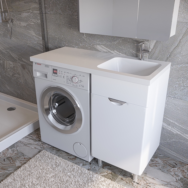 Модель "Кэтрин" - практичное и компактное решение для небольших помещений ванных комнат, при этом позволяющее разместить большое количество необходимых предметов не только на полочках зеркала-шкафа и пенала, но и предусматривающее наличие корзины для белья в напольной тумбе.
