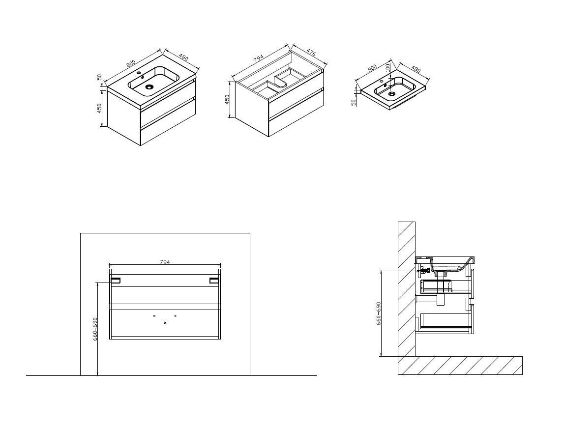 • Мебель для ванной комнаты: тумба под раковину подвесная.