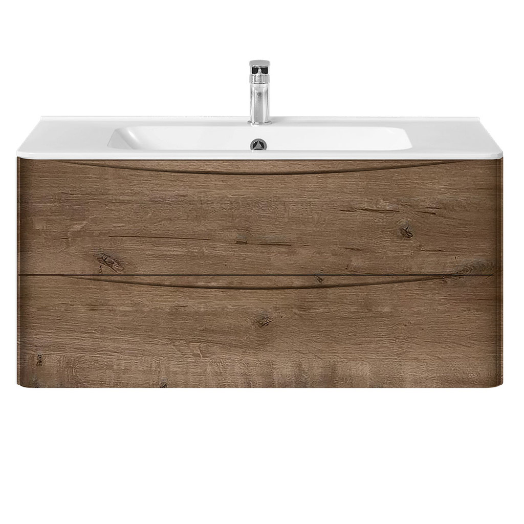 Подвесная тумба под раковину Vincea Paola 100 под раковину, 2 выкатных ящика soft close, коричневая - VMC-2P100VO