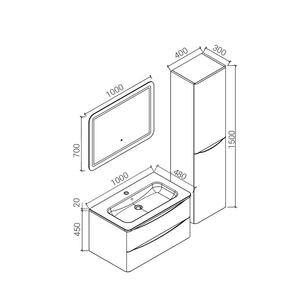 • Мебель для ванной комнаты: тумба под раковину подвесная.