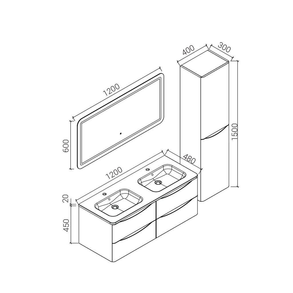 • Мебель для ванной комнаты: тумба под раковину подвесная.