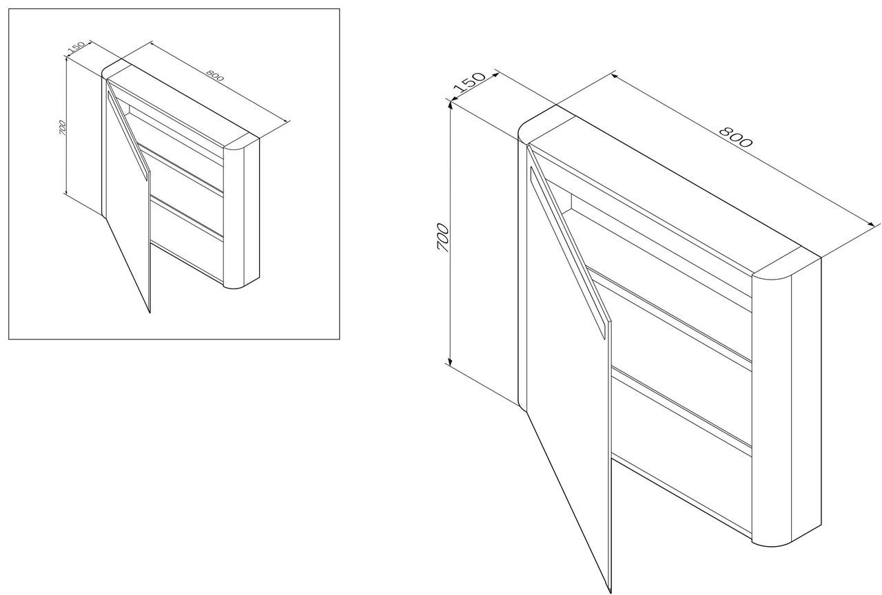 • Зеркало, зеркальный шкаф, левый, 80 см, с подсветкой, мятный, глянцевый.