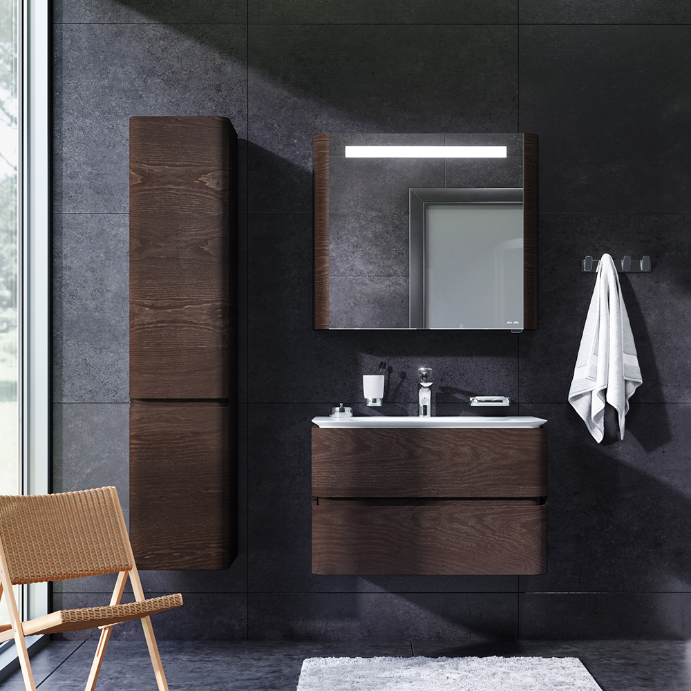 • Зеркало, зеркальный шкаф, левый, 80 см, с подсветкой, табачный дуб.