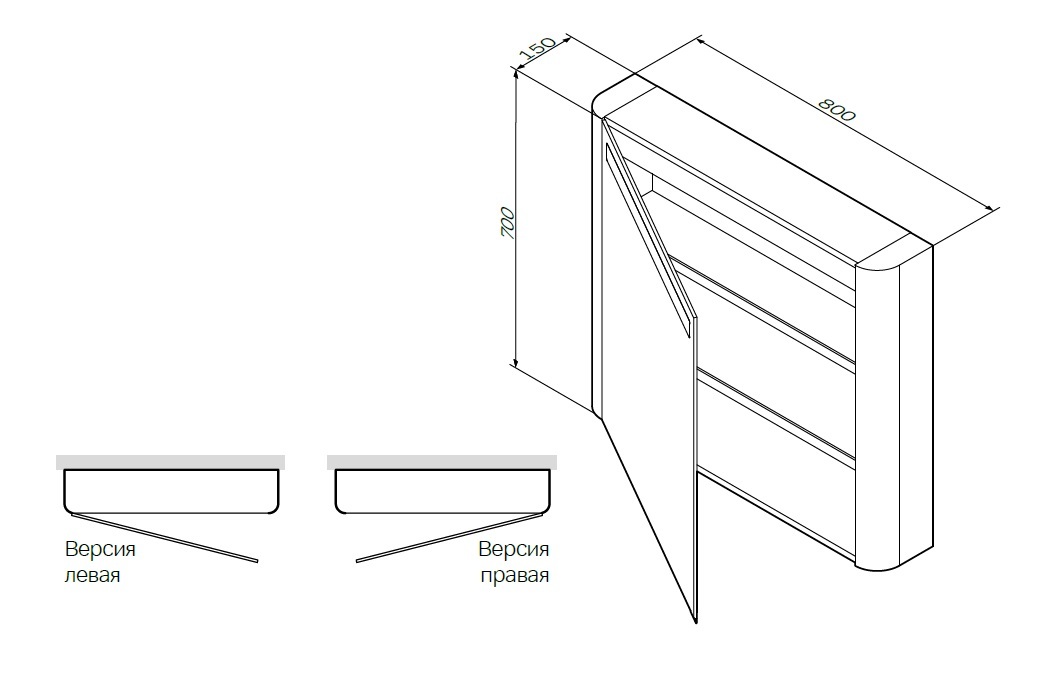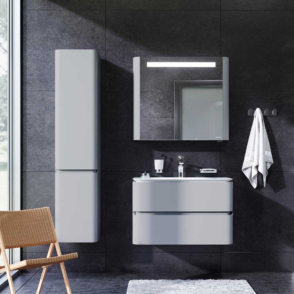 • Зеркало, зеркальный шкаф, правый, с подсветкой, серый шелк, глянцевый.