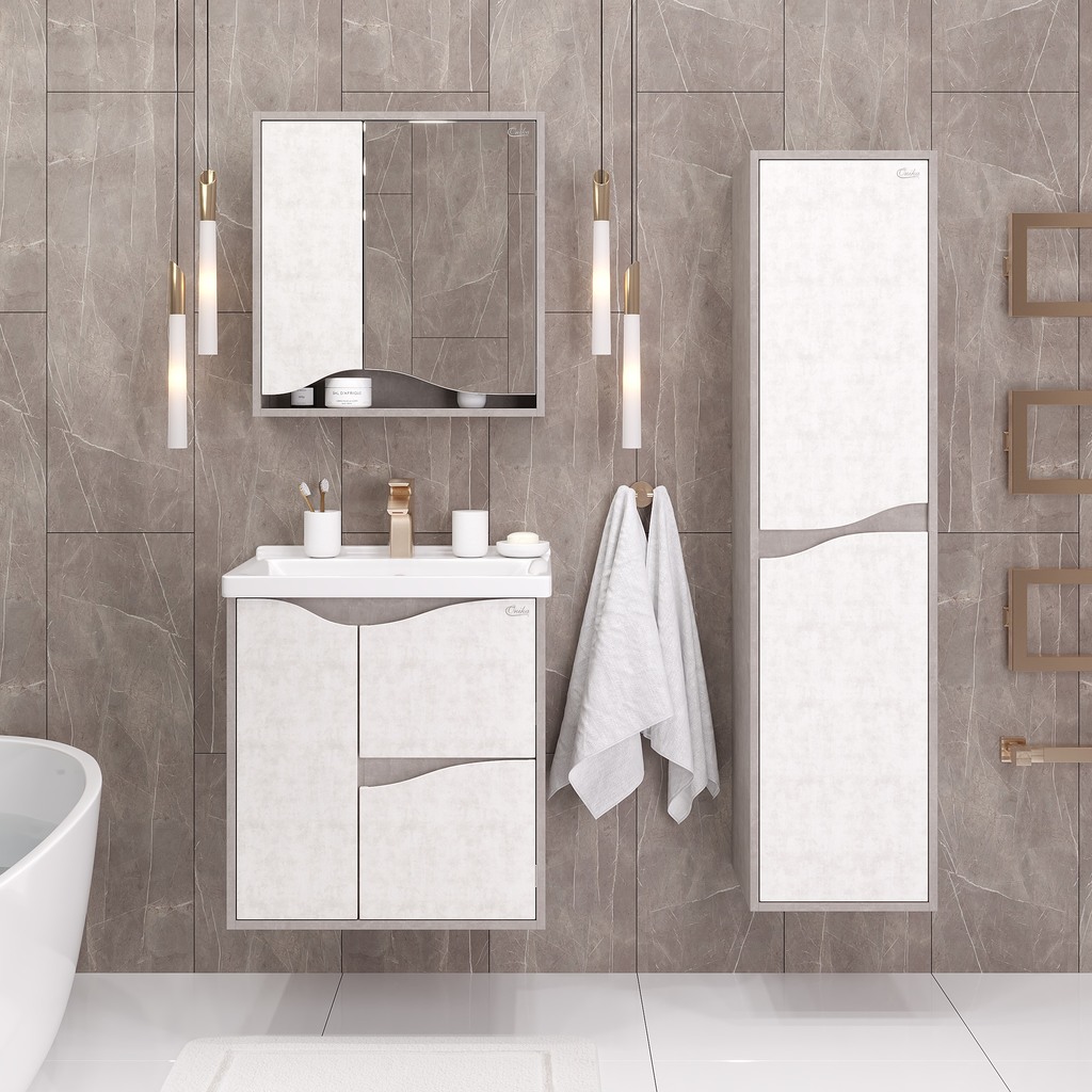 Зеркальный шкаф Onika БРЕНДОН 60.00 поможет создать особенную атмосферу ванной комнаты: текстуры камня и бетона гармонично дополняют друг-друга, создавая сдержанный выразительный акцент в интерьере.