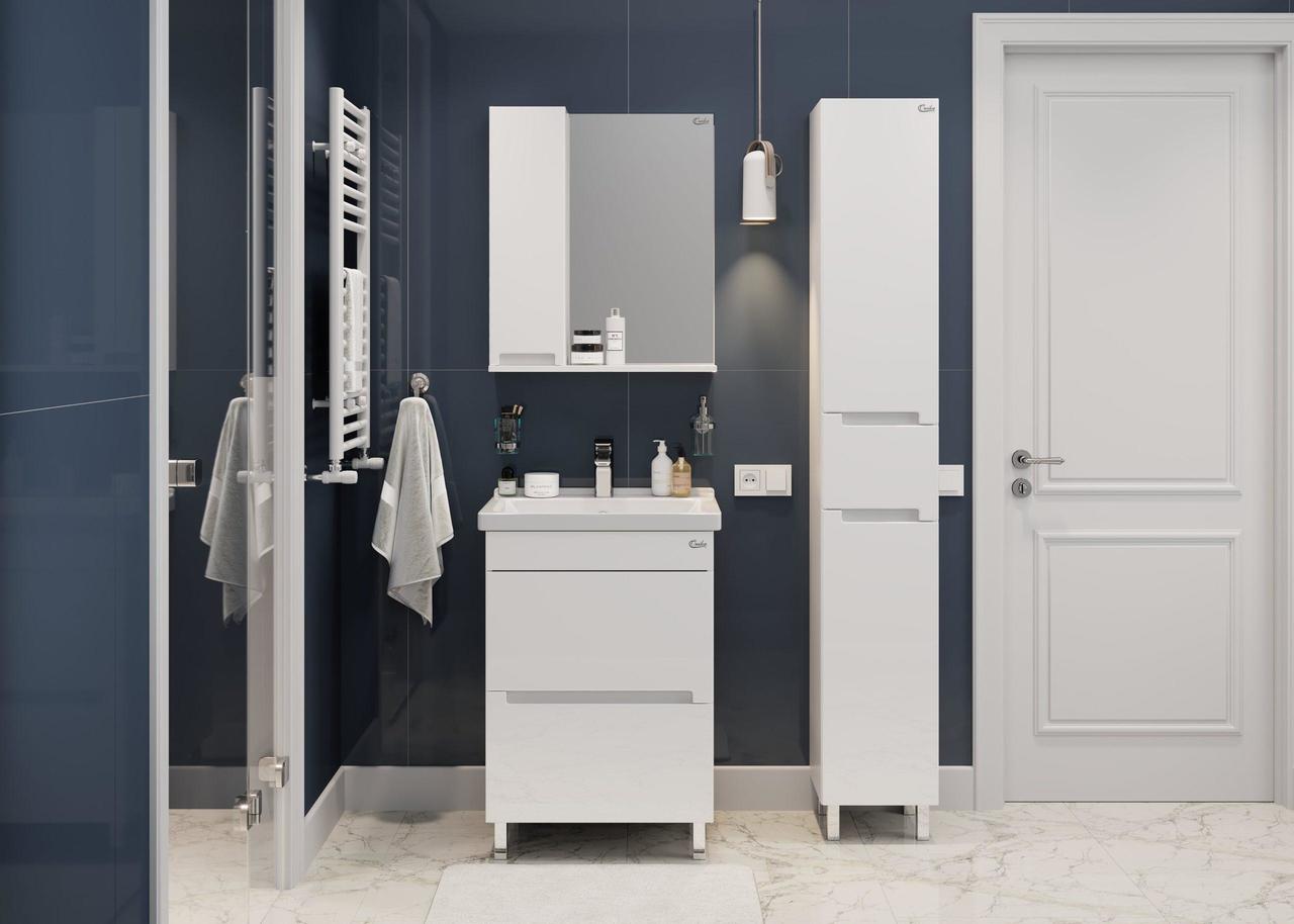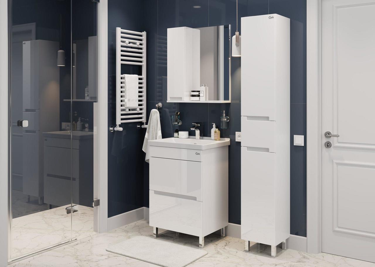 Яркая эстетика строгих форм и блестящий белый глянец - зеркальный шкаф Onika ДЖОРДАН 70.12 создан, чтобы наполнить пространство воздухом и сделать особенный свободный интерьер комнаты.