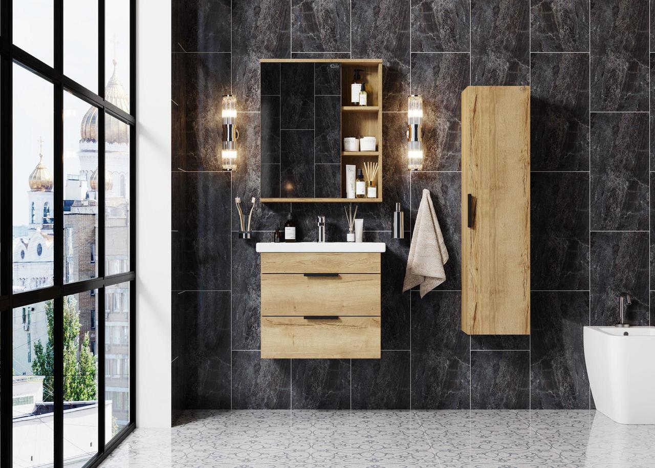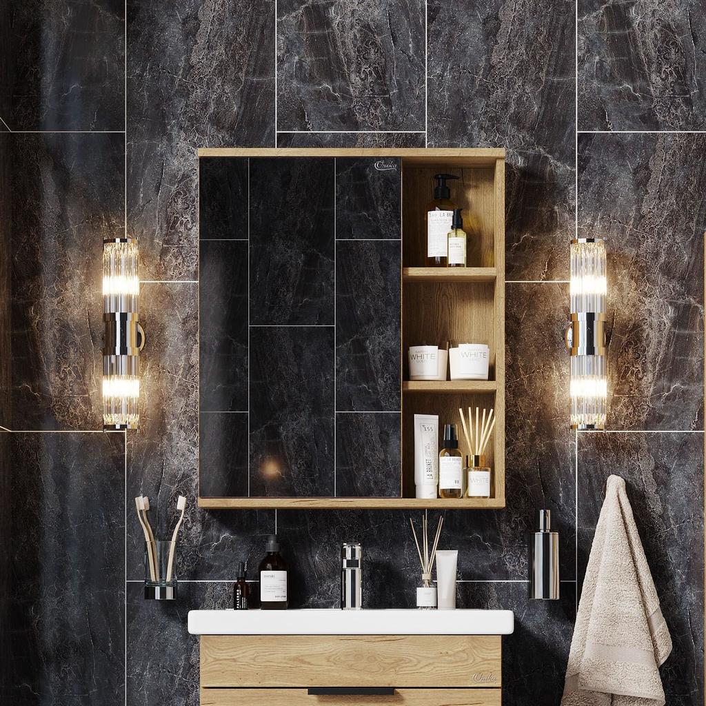 Зеркальный шкаф Onika ЛЕГРАН 50.00У - это сочетание насыщенного древесного декора и благородства металла: роскошная текстура и натуральный цвет дуба дают теплоту, а матовая металлическая ручка добавляет урбанизма и солидности.