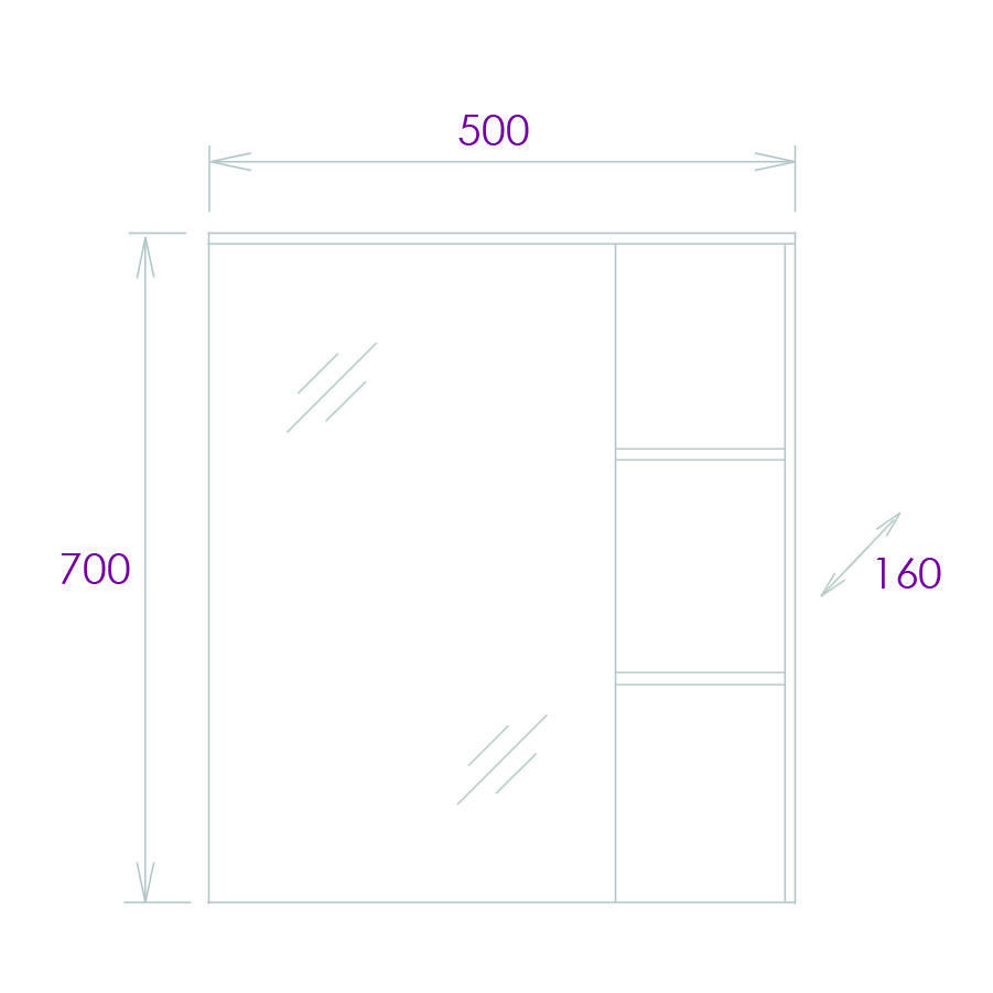 Открытая полка обеспечивает быстрый доступ к часто используемым аксессуарам, а пространство за распашной зеркальной дверцей с механизмом плавного закрывания, разделенное полочкой, станет удобным местом для хранения различных бытовых принадлежностей.