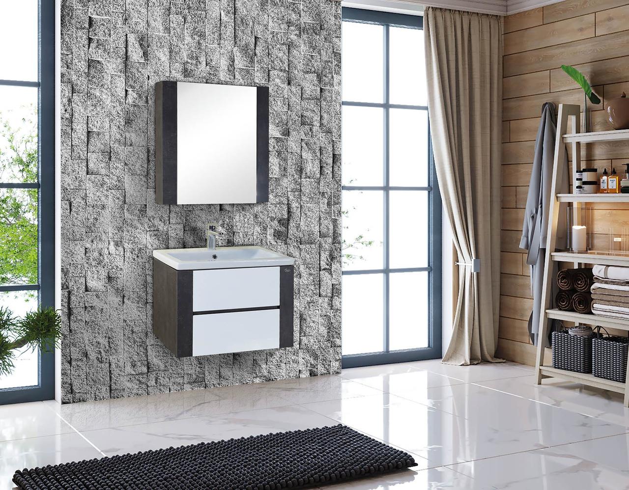 Шкаф-зеркало Onika СТОУН 70.00 отражает актуальные тенденции в дизайне мебели для ванной комнаты: минимализм и геометрия фасадов, чёткость и лаконичность форм, отсутствие декора и стильный цвет темного бетонного покрытия.