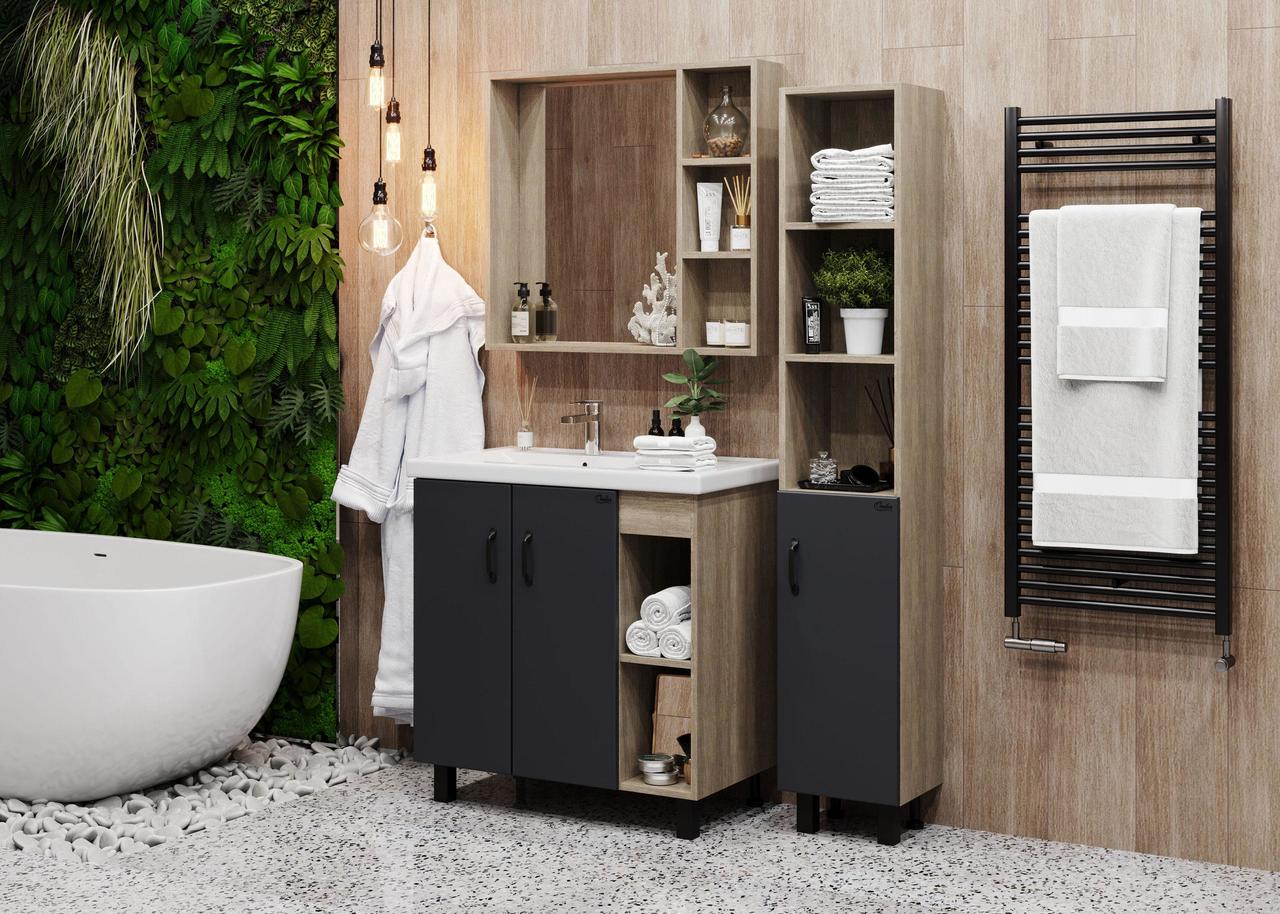 Зеркальный шкаф Onika ТИМБЕР 70.00У отражает современные тенденции в дизайне мебели для ванных комнат: минимализм с простыми и понятными формами, цвета дуба с роскошной текстурой, отсутствие лишних деталей.