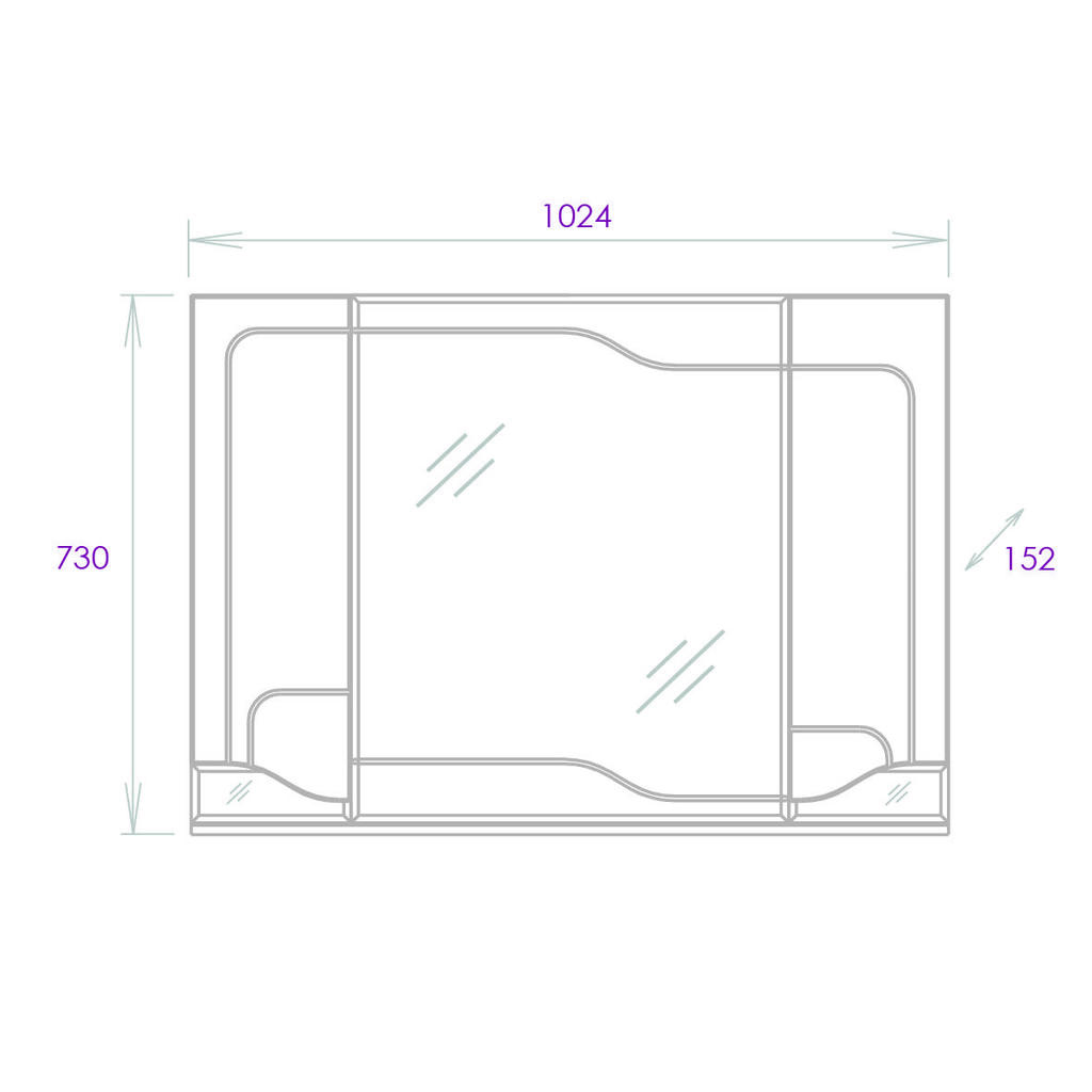 Современный функционал шкафа позволяет удобно расположить все необходимое: две распашные дверцы с механизмом плавного закрывания по бокам от зеркала скрывают объемное пространство для хранения, разделенное стеклянными полочками с еврокромкой. Большую открытую полку снизу можно использовать для декора или часто используемых предметов.