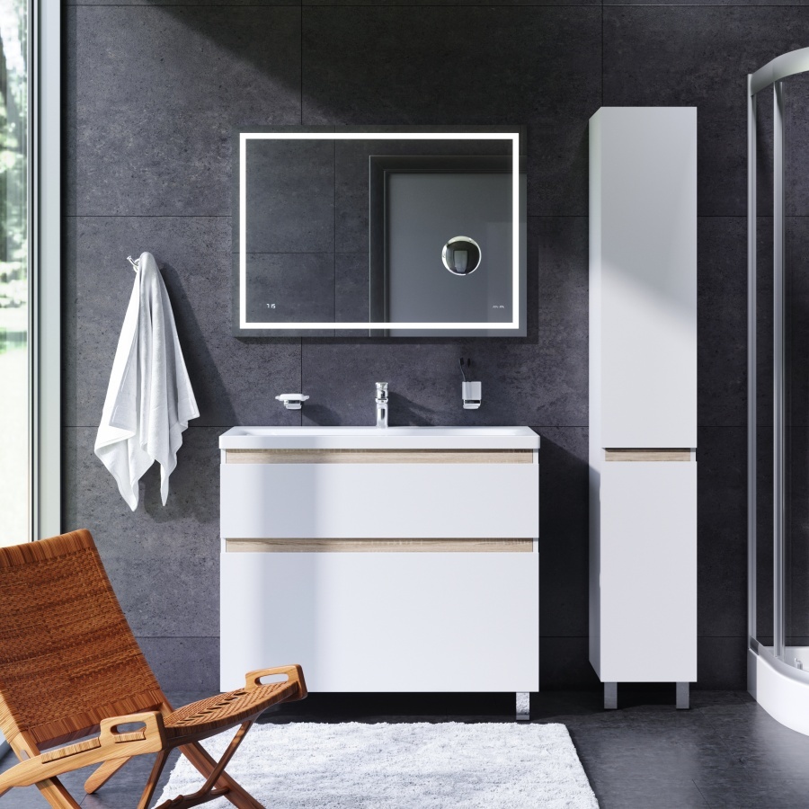• Универсальное зеркало с контурной Led-подсветкой, часами и косметическим зеркалом.