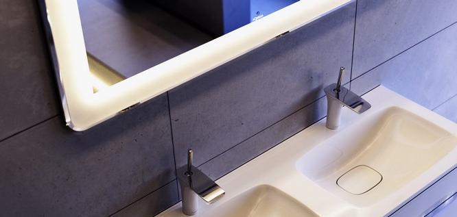 Зеркало со светодиодной подсветкой и сенсорным выключателем.