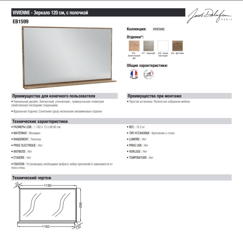 Зеркало Jacob Delafon Vivienne 120 белый меламин с полочкой - цена 24010 руб. Оформить заказ и купить компонент Jacob Delafon Vivienne 120 белый меламин с полочкой в Москве в нашем интернет магазине можно по тел 8 (919) 991-95-00 или добавив товар в корзину.