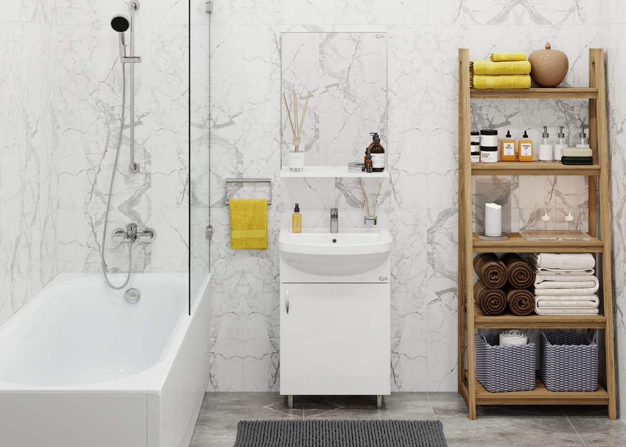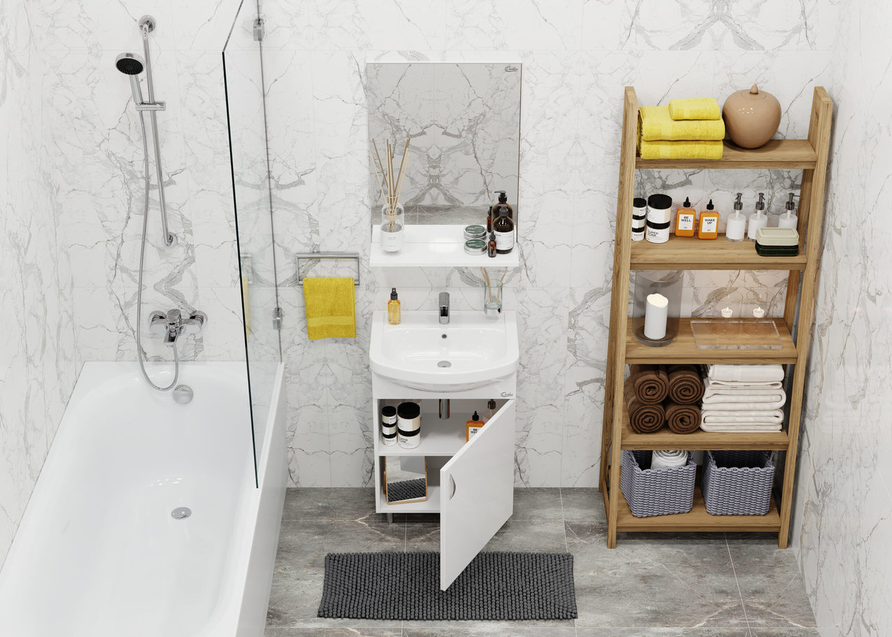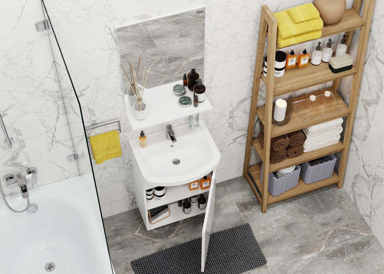 Зеркало выполнено из ЛДСП, устойчивой к механическим воздействиям, перепадам температур и высокой влажности.