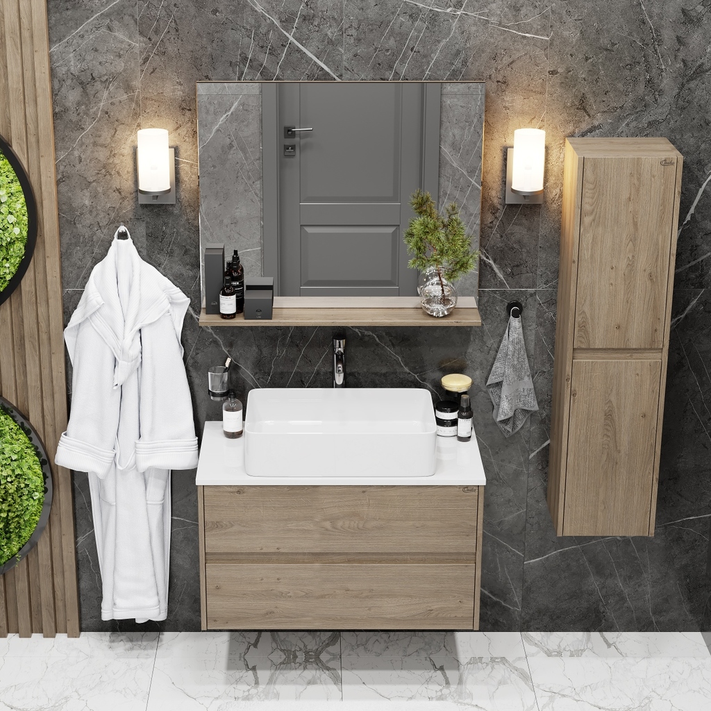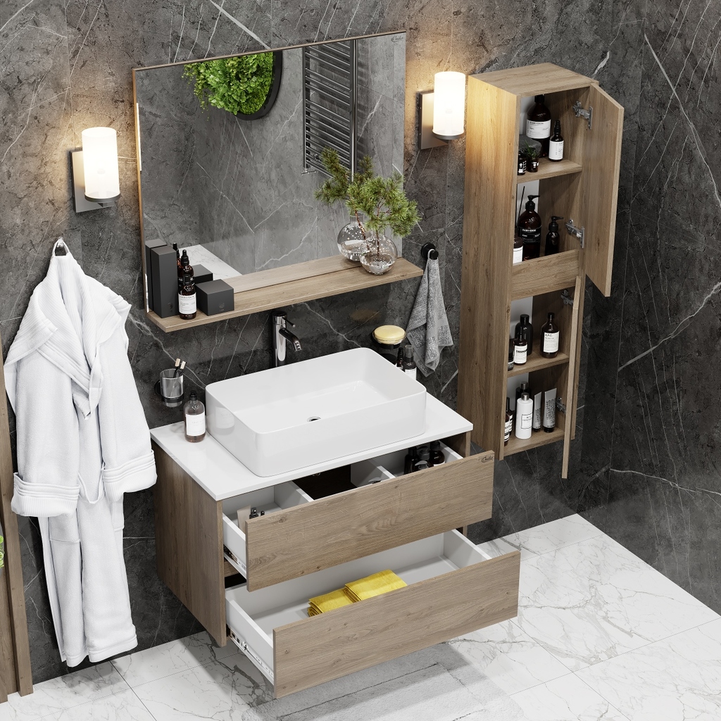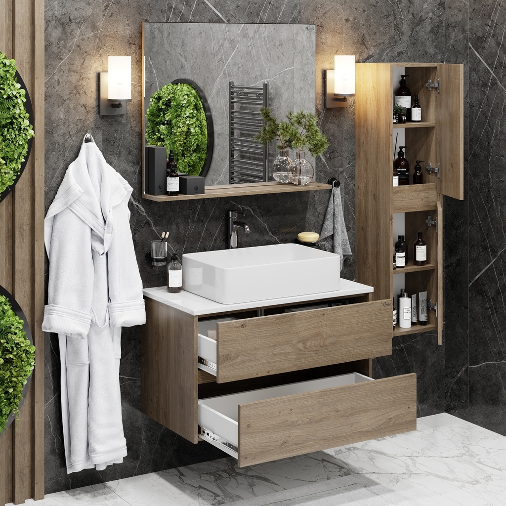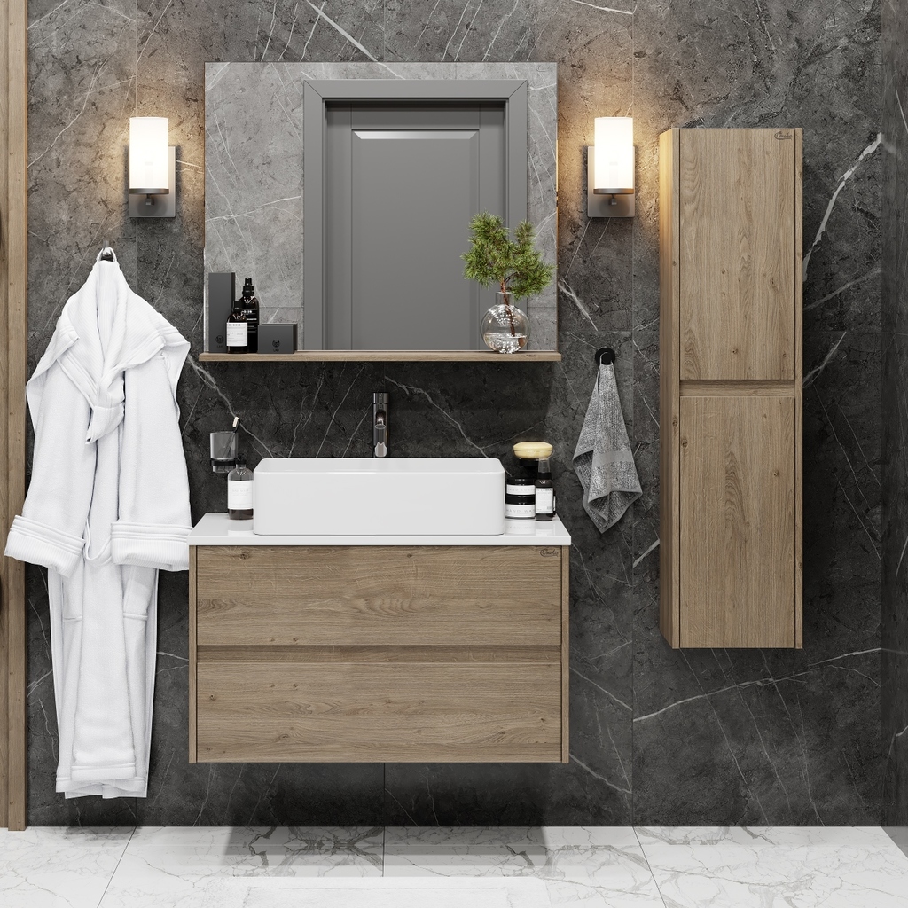 Зеркало Onika ХОУП 85.00 отражает современные тенденции в дизайне мебели для ванных комнат: минимализм с простыми и понятными формами, эффектный цвет дерева, отсутствие лишних деталей.