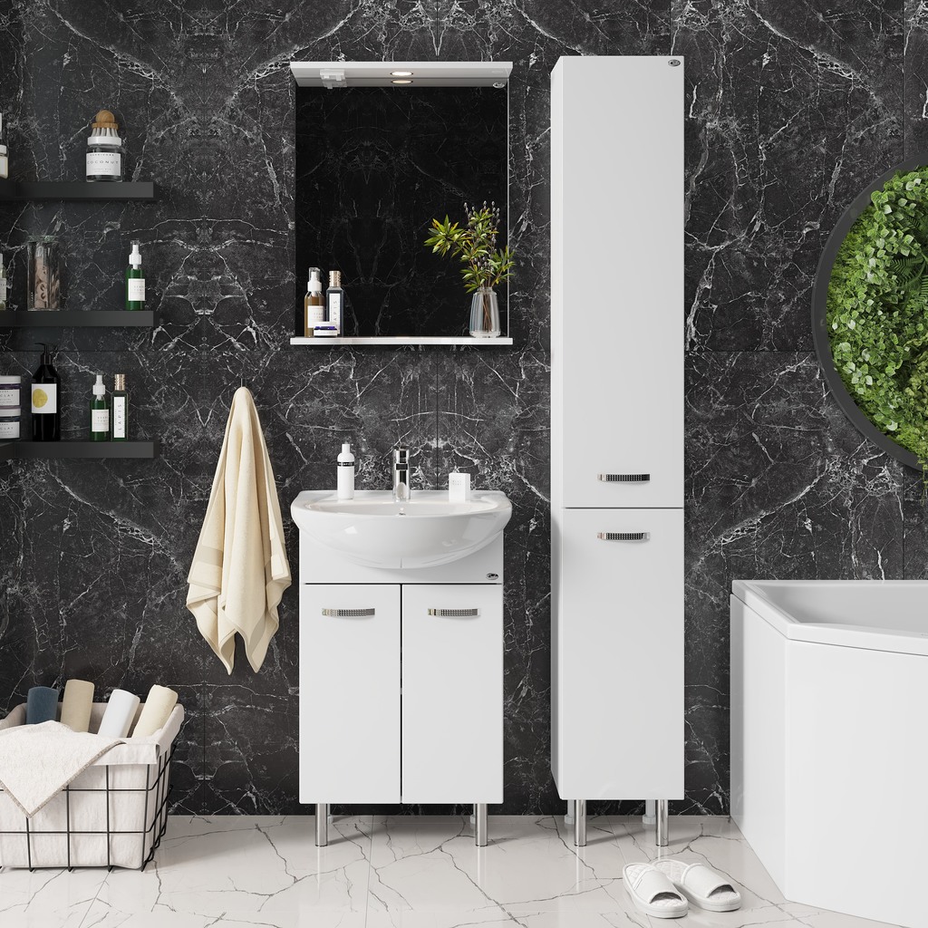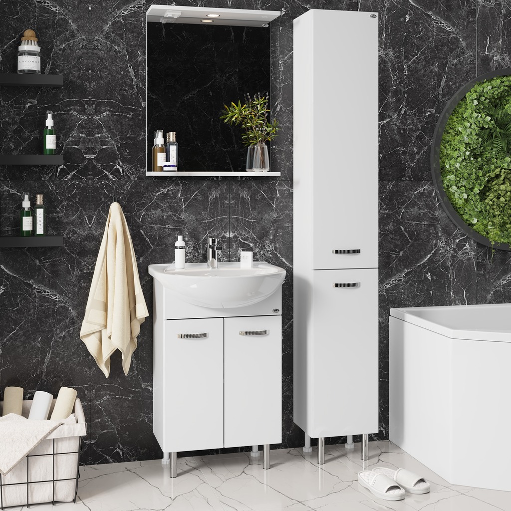 Основа для зеркала выполнена из ЛДСП, полка и козырек - из МДФ в пленке, устойчивых к механическим воздействиям, перепадам температур и высокой влажности.