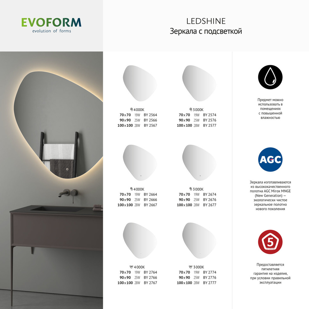 Компания ООО «САНТЕХ АЛЬЯНС» при изготовлении зеркал торговой марки «Evoform» использует серебряные зеркальные полотна мирового производителя AGC- Asahi Glass Co (Япония). AGC - первая компания, применившая новейшую технологию Mirox, которая стала мировым эталоном. Mirox New Generation Ecological - это новое поколение экологически чистых, высококачественных, стойких к воздействиям зеркал, характеристики которых превосходят требования самых строгих стандартов.