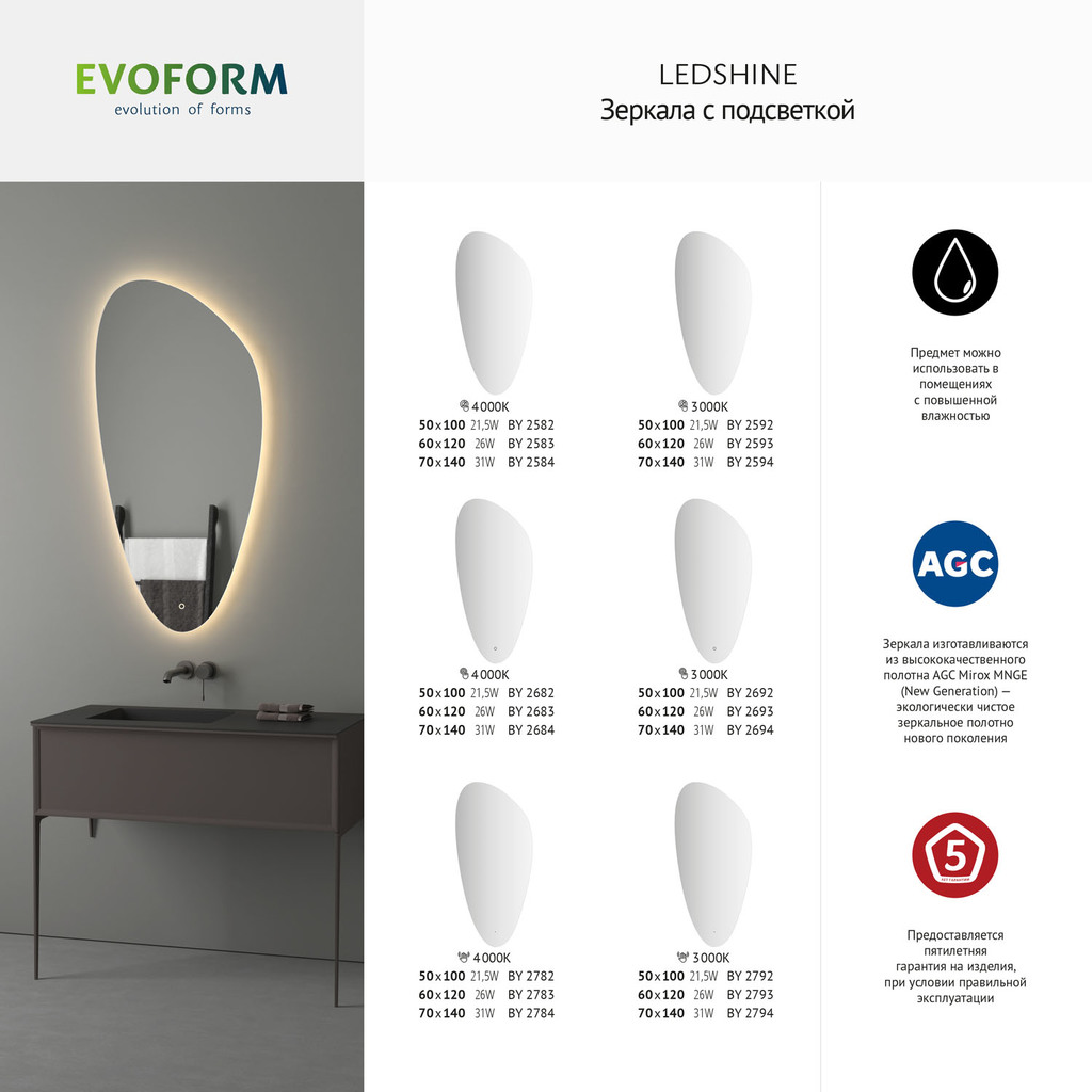 Компания ООО «САНТЕХ АЛЬЯНС» при изготовлении зеркал торговой марки «Evoform» использует серебряные зеркальные полотна мирового производителя AGC- Asahi Glass Co (Япония). AGC - первая компания, применившая новейшую технологию Mirox, которая стала мировым эталоном. Mirox New Generation Ecological - это новое поколение экологически чистых, высококачественных, стойких к воздействиям зеркал, характеристики которых превосходят требования самых строгих стандартов.