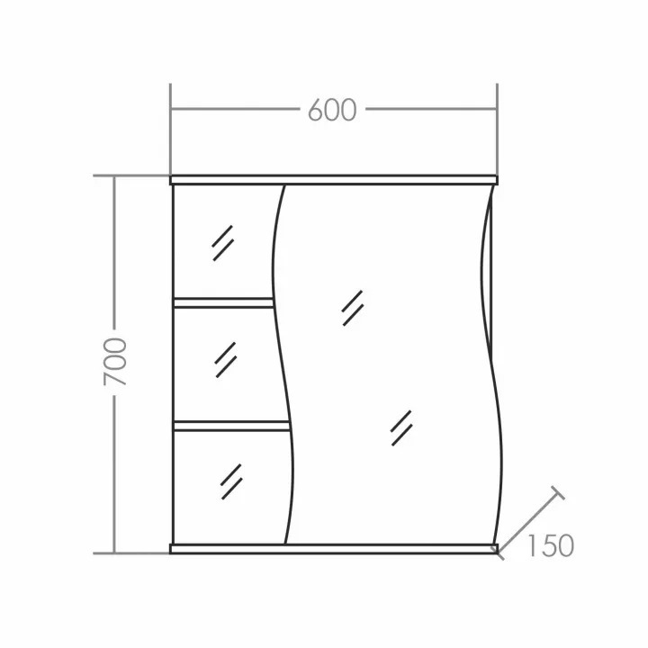 корпус и фасад изделия выполнены из влагостойкого из МДФ и покрыты глянцевой ПВХ-пленкой.