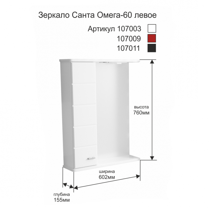 Корпус изделий выполнен из влагостойкого ЛДСП, фасад из МДФ. Фасад мебели покрыты глянцевой ПВХ плёнкой.