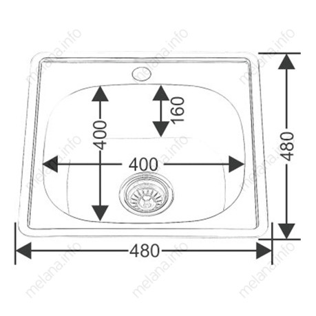Мойка кухонная Melana 4848 0, 6/160 врезная квадратная с сифоном - 021-t-15
