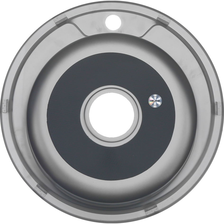 Мойка кухонная Melana 490 0, 8/180 матовая врезная круглая с сифоном - 002M-TA-12