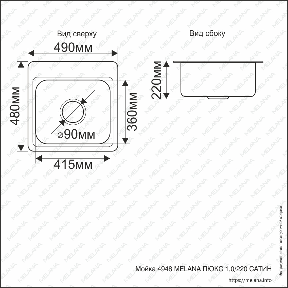 Мойка кухонная Melana 4948 люкс 1, 0/220 сатин врезная прямоугольная с сифоном - 223-t-5