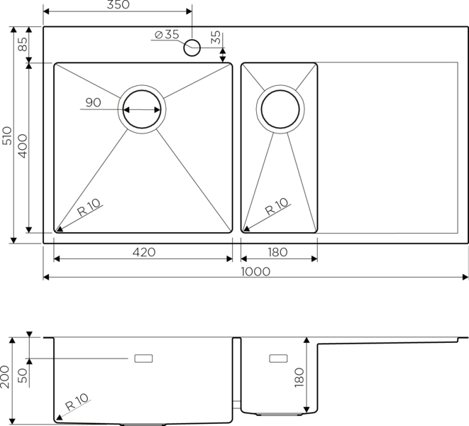 Высококачественная хромоникелевая нержавеющая сталь SUS304. Она содержит 18% хрома и 8% никеля, что обеспечивает её максимальную защиту от коррозии. Самый важный показатель у мойки из нержавеющей стали - толщина стали, ведь чем она тоньше, тем менее твердой, надежной и долговечной будет мойка. Для качественной мойки лучше выбирать толщину выше 0,6 мм. Мойки бренда Omoikiri имеют толщину от 0,7 до 1,2 мм;