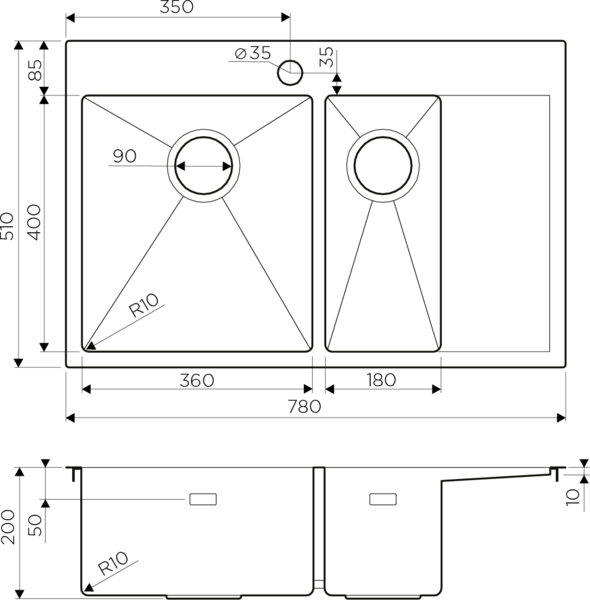 Высококачественная хромоникелевая нержавеющая сталь SUS304. Она содержит 18% хрома и 8% никеля, что обеспечивает её максимальную защиту от коррозии. Самый важный показатель у мойки из нержавеющей стали - толщина стали, ведь чем она тоньше, тем менее твердой, надежной и долговечной будет мойка. Для качественной мойки лучше выбирать толщину выше 0,6 мм. Мойки бренда Omoikiri имеют толщину от 0,7 до 1,2 мм;