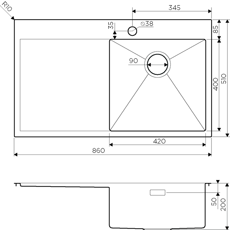 Высококачественная хромоникелевая нержавеющая сталь SUS304. Она содержит 18% хрома и 8% никеля, что обеспечивает её максимальную защиту от коррозии. Самый важный показатель у мойки из нержавеющей стали - толщина стали, ведь чем она тоньше, тем менее твердой, надежной и долговечной будет мойка. Для качественной мойки лучше выбирать толщину выше 0,6 мм. Мойки бренда Omoikiri имеют толщину от 0,7 до 1,2 мм;
