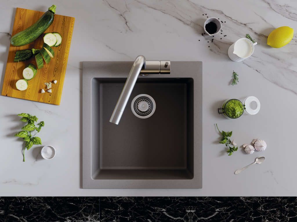 Также, при изготовлении моек из «Tetogranit» применяется специальный способ окрашивания частиц гранита: на их поверхность при температуре выше 700°С наносится пигмент, который за счет высокотемпературного нанесения проникает во внутренние структуры камня;
