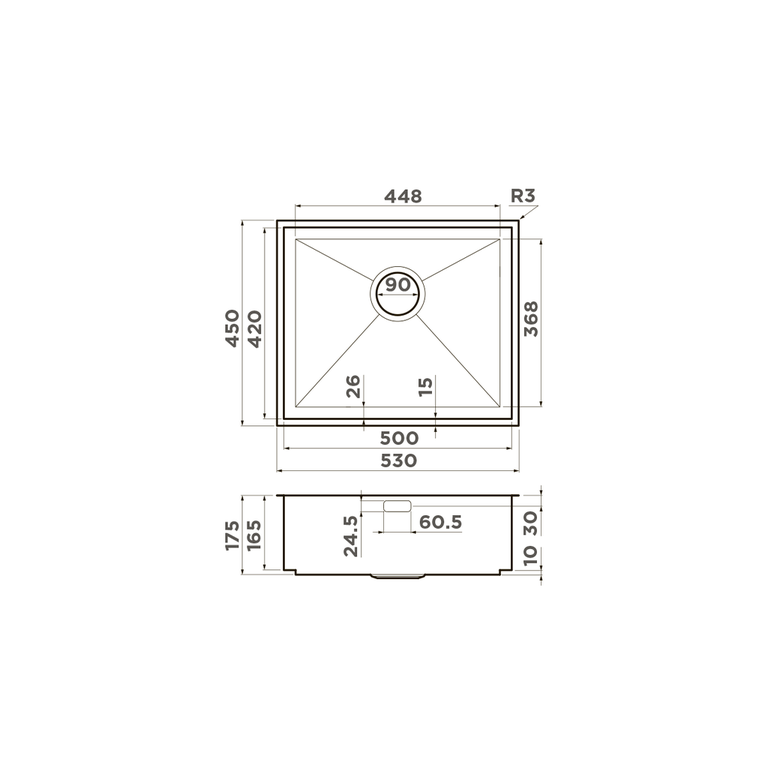 Kasen 54-16 – увеличенная мойка, которая подходит для изделий с материалом, толщиной 12 мм (компакт, акриловый камень весь, кварц, керамика).