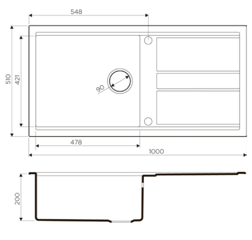 Материал выдерживает высокие температуры до 280°С (но не стоит ставить на поверхность мойки горячие сковородки и кастрюли, т.к их температура может достигать 500°С).