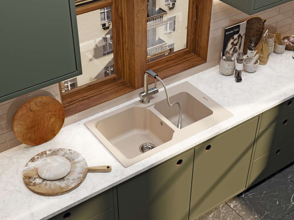 Также, при изготовлении моек из «Tetogranit» применяется специальный способ окрашивания частиц гранита: на их поверхность при температуре выше 700°С наносится пигмент, который за счет высокотемпературного нанесения проникает во внутренние структуры камня;