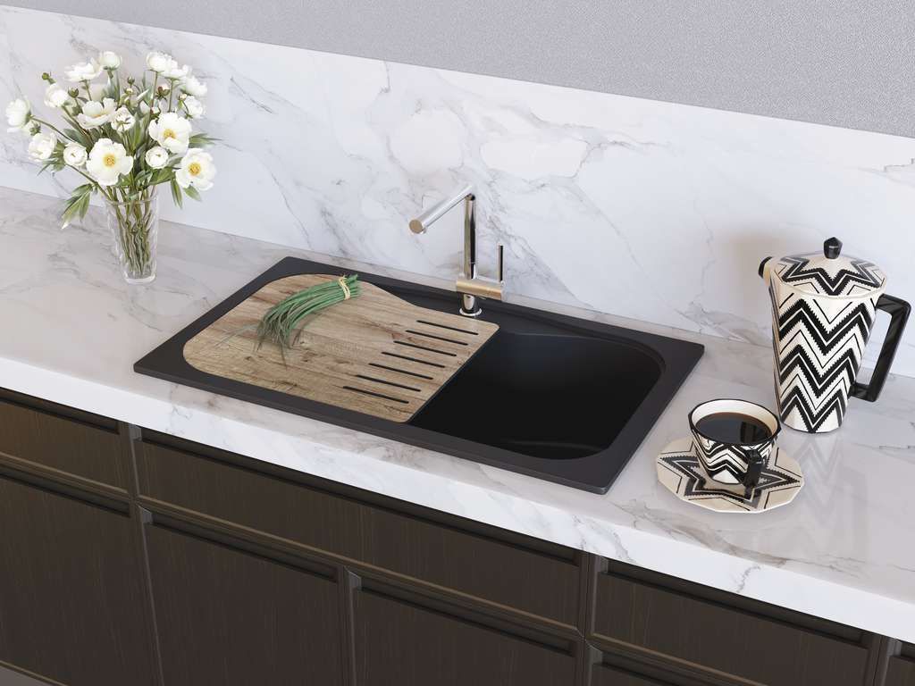 Также, при изготовлении моек из «Tetogranit» применяется специальный способ окрашивания частиц гранита: на их поверхность при температуре выше 700°С наносится пигмент, который за счет высокотемпературного нанесения проникает во внутренние структуры камня;