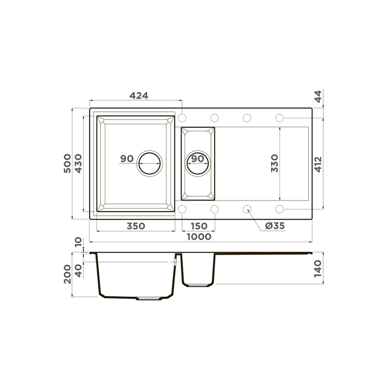 Мойка черного цвета создана из материала «Tetogranit Metal». В его составе: акриловая смола и натуральный гранит с добавлением металлических частиц, которые придают блеск и мерцание поверхности мойки. «Tetogranit Metal» отличается максимальной устойчивостью к температурным перепадам и ударам;
