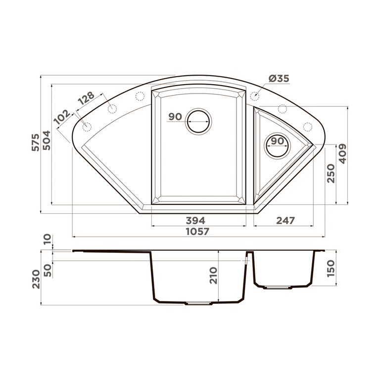 Мойка черного цвета создана из материала «Tetogranit Metal». В его составе: акриловая смола и натуральный гранит с добавлением металлических частиц, которые придают блеск и мерцание поверхности мойки. «Tetogranit Metal» отличается максимальной устойчивостью к температурным перепадам и ударам;